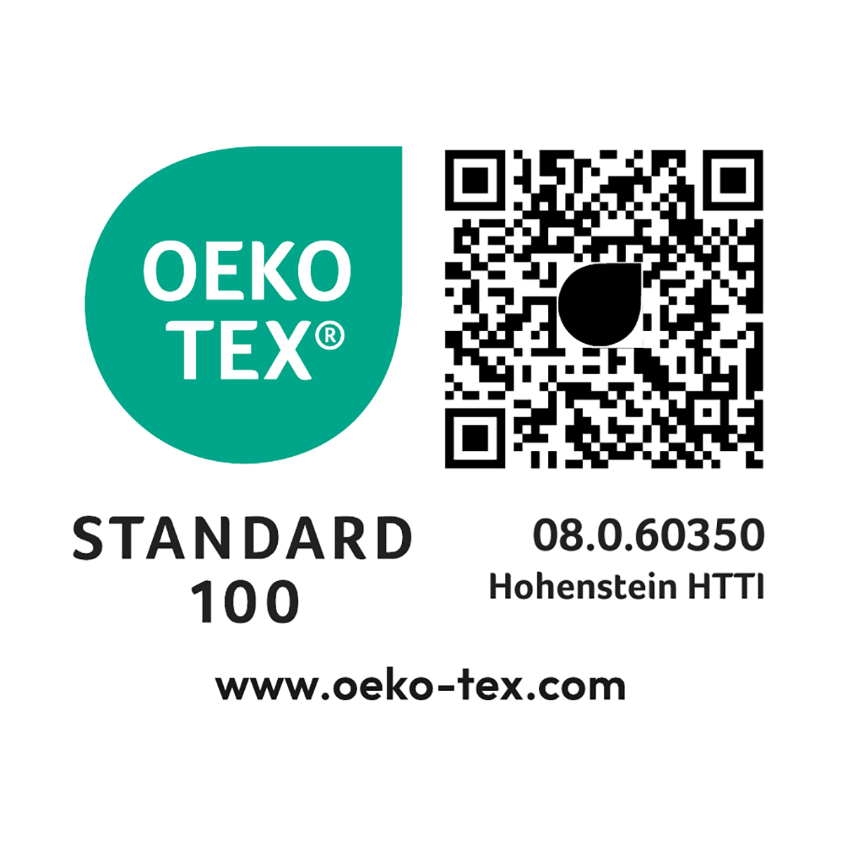 - Oeko-Tex Standard 100 zertifiziert (08.0.60350 HOHENSTEIN HTTI)